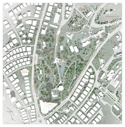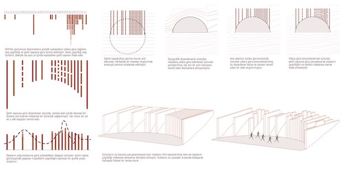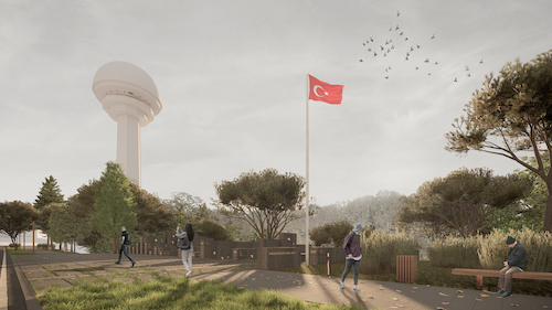Tasarım yaklaşımı, Botanik Park’ın mevcut kültürel peyzaj değerlerine saygı göstererek; topografyaya müdahaleyi minimumda tutan, hafızayı toprağa işleyen ve zamana sabitleyen bir mekân dili öneriyor. Yeşil aksın sürekliliğini ve ekolojik bütünlüğü koruyarak, mekânsal bir hafıza izini doğanın içine açıyor.